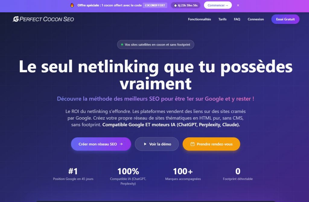 Pour mes propres projets et ceux de mes clients, j’ai récemment testé et adopté une solution révolutionnaire qui fait gagner un temps précieux : Perfect Cocon SEO.